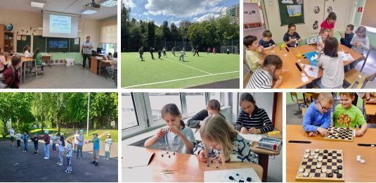 4 смена летней школы по традиции начинается с линейки, зарядки и завтрака, а затем школьники отправляются на различные занятия: ИЗО, вокал, английский язык, спортивные игры, театр и творческие мастерские.