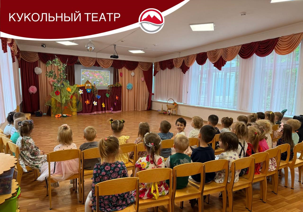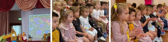 Педагоги показали детям спектакль по мотивам русской народной сказки «Теремок». Ребята, затаив дыхание, ожидали начала сказки. И вот, на фоне красочных декораций началось представление.