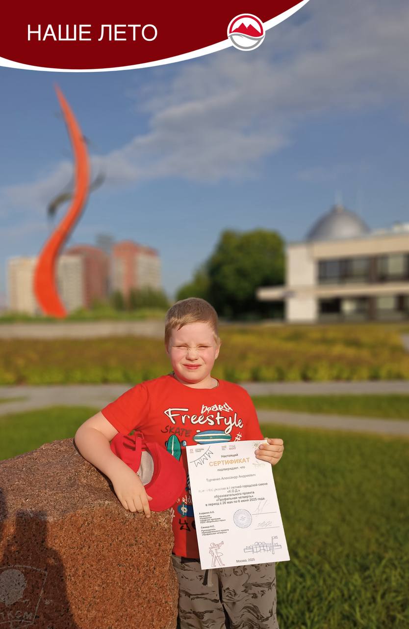 «Этим летом мы вместе с мамой ездили в Крым! Отдыхали недалеко от Евпатории, в поселке Новофедоровка. Побывали в Севастополе, Херсонесе и в Евпатории. Я купался в море, загорал, побывал на фестивале караимов - очень малочисленной народности, попробовал национальные караимские блюда. До поездки в Крым я был в лагере на Воробьёвых горах. Попасть на профильные смены туда можно только по конкурсу, и я его прошёл, потому что в течение года сдавал ГТО и стал победителем Олимпиады МПУ. В лагере у нас было много игр на свежем воздухе, а также занятия по 3D моделированию, подготовка и участие в концерте. После поездки в Крым был на исторической и на спортивной сменах в городском клубе «Лето Побед» на Поклонной горе. Там было очень круто! Наш отряд готовил выставку о находках поискового отряда Тризна. А ещё мы ходили на экскурсии в Музей Победы, играли в лазертаг. Там у меня появились новые друзья. Последний месяц каникул я проведу на даче в Подмосковье. Буду помогать бабушке и дедушке собирать урожай, купаться в пруду и гулять с друзьями», - рассказывает Александр.