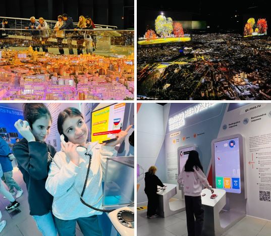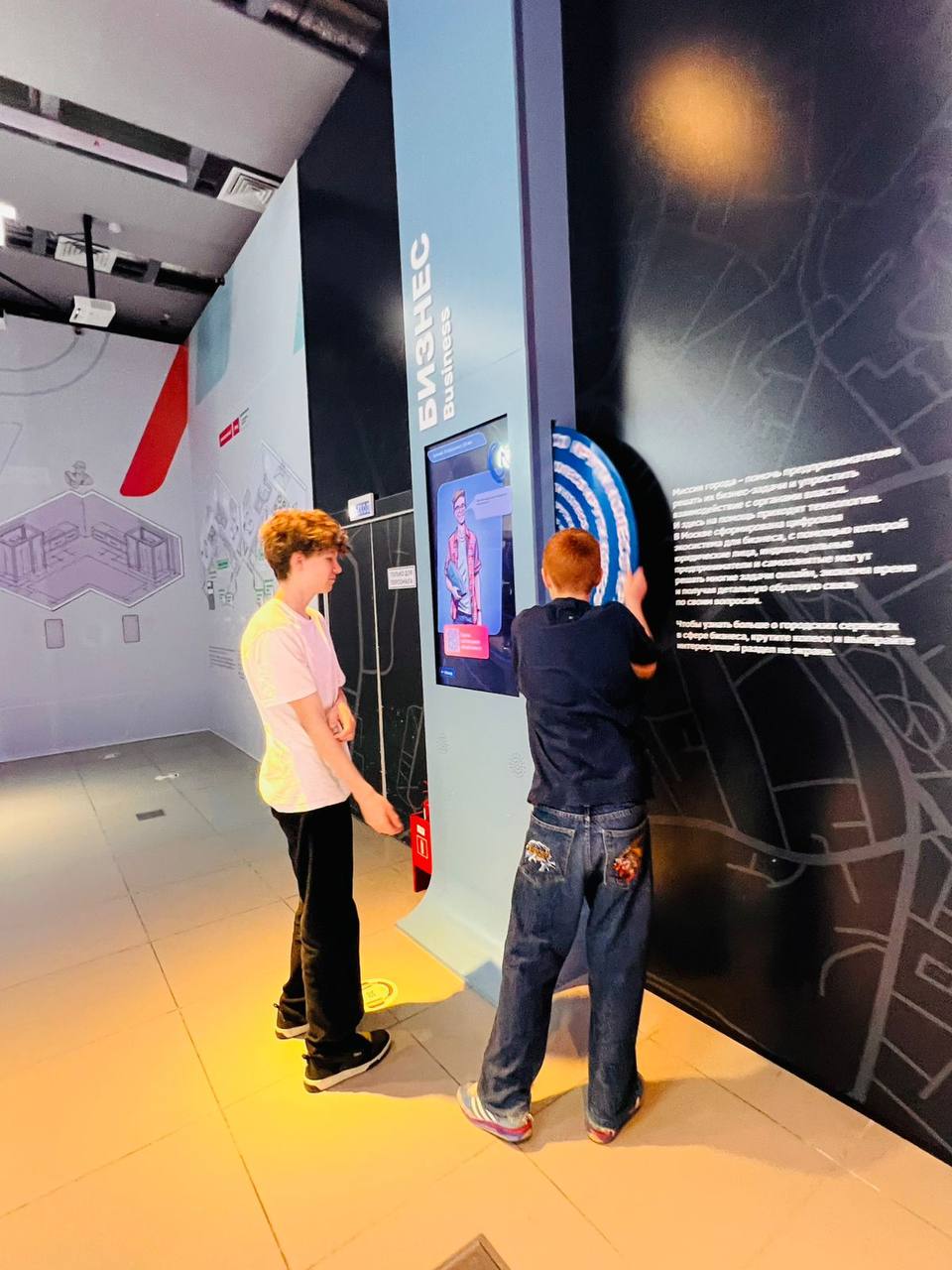 Экспозиция разделена на тематические зоны, отражающие все социально-значимые сферы жизни москвичей: транспорт, медицина, образование, благоустройство, культура, бизнес, туризм. Ребята познакомились с передовыми информационными технологиями столицы и самостоятельно управляли интерактивными элементами и экспонатами.