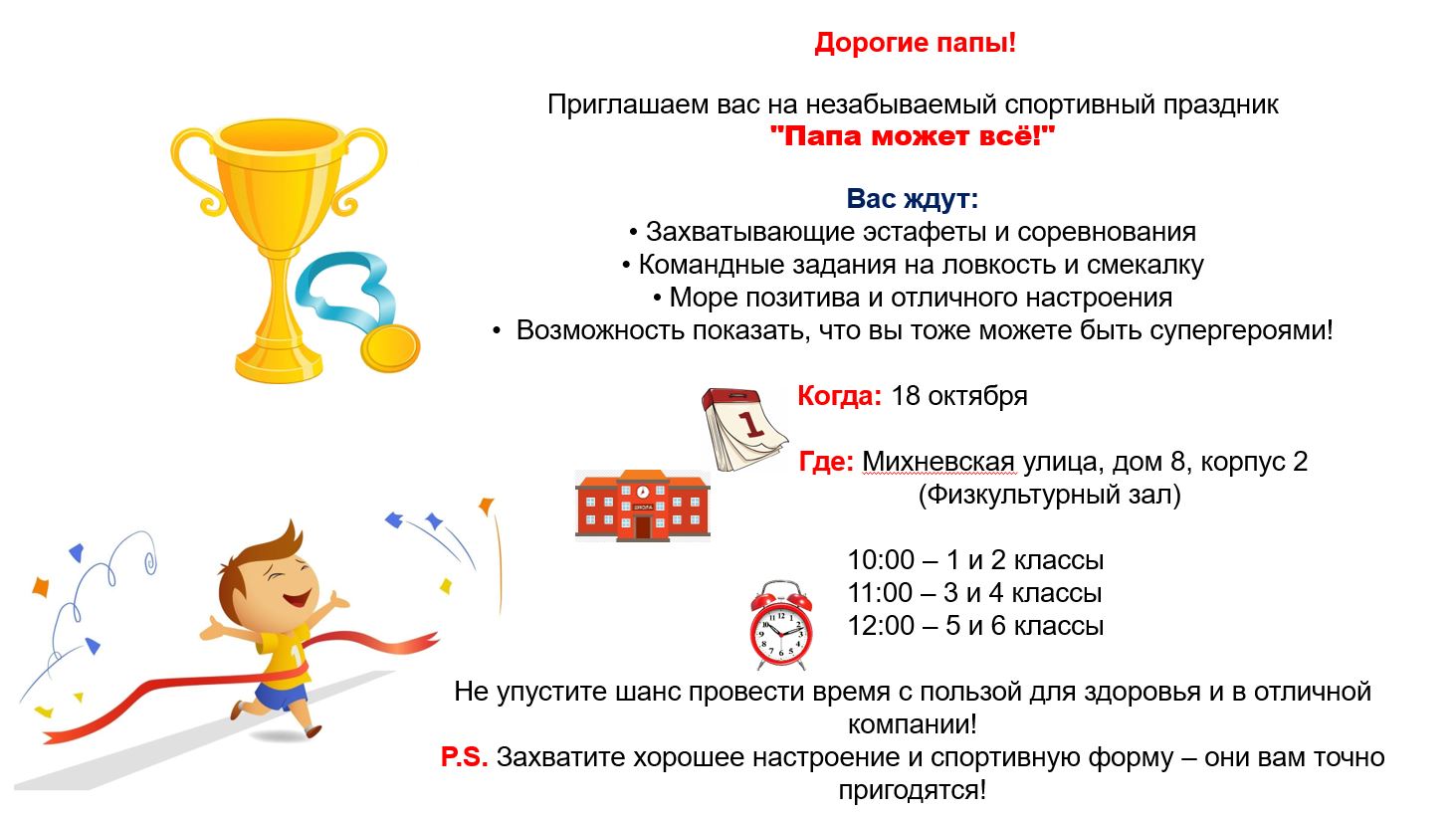 Дорогие папы! Приглашаем вас на незабываемый спортивный праздник "Папа может всё!"
