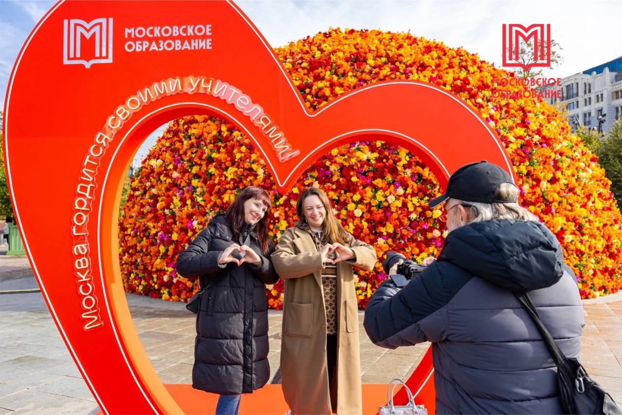 Фотозона для красивых кадров в честь Дня учителя уже радует всех желающих на Пушкинской площади.