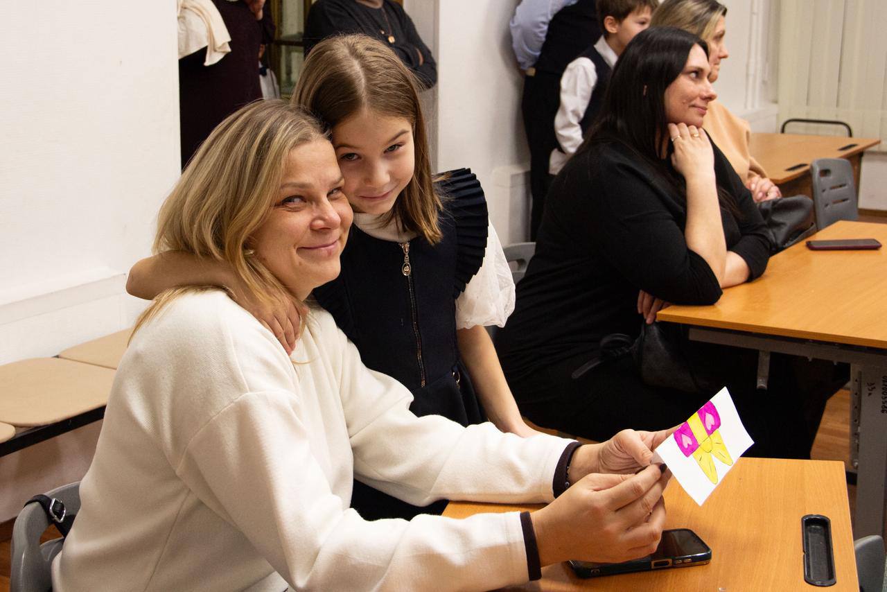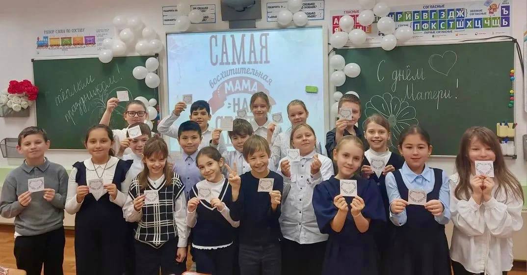 Вторая часть собрания получилась особенно тёплой: ребята подготовили мамам поздравление ко Дню матери — стихи, творческие номера и открытки, сделанные своими руками.