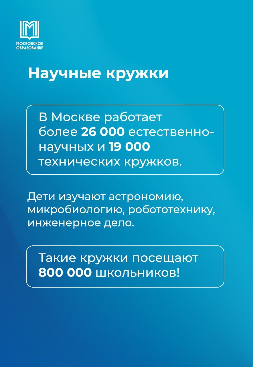 О том, какие возможности есть у юных учёных в столице, смотрите в карточках: