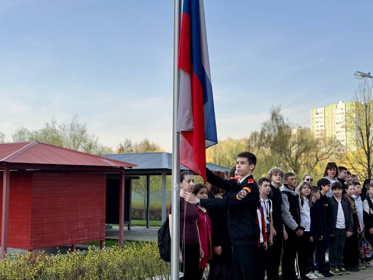Традиционно начинаем нашу неделю с церемонии поднятия Государственного флага Российской Федерации.