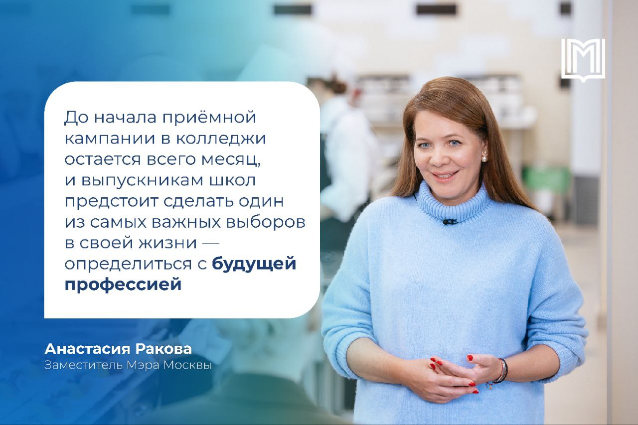 «У сегодняшних девятиклассников по-настоящему широкий выбор треков для обучения и построения карьеры: в Москве представлены сотни современных профессий, и каждый может найти то, что ему действительно нравится.Чтобы помочь ребятам принять осознанное решение, с 31 мая мы начинаем масштабную программу дней открытых дверей в колледжах», — рассказала заммэра Анастасия Ракова.
