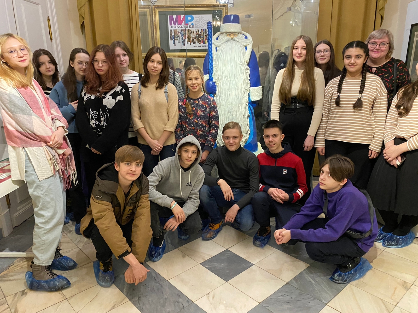 Сегодня я побывала на увлекательной экскурсии в музее шоколада. Прекрасно организованная поездка Львовой Мариной Васильевной, Зериной Еленой Борисовной и Дорофеевой Аленой Игоревной, была очень интересной. Участники экскурсии не только узнали историю шоколада, но и сами приняли образ - шоколатье. С наступающим новым годом, вас дорогие учителя. Спасибо. (В этом Дедушке Морозе - 122килограмма чистого шоколада)